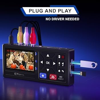 【Video to Digital Converter】Effortlessly convert and store analog video and audio signals into digital formats, Recording resolution up to 1080P 30Hz. Supports AV/RCA (CVBS+R/L), S-Video, and AUX inputs. Plug and play, No PC, Software, Driver Needed. NOTE: This is a Converter/Recorder/Capture box only, can NOT play with any tapes and DVDs independently.